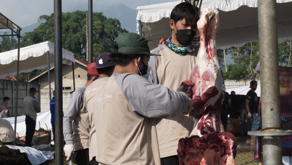 Hari ini umat Islam di Tanah Air melakukan penyembelihan hewan kurban. Kesibukan demikian terlihat di sekitaran masjid dan lokasi penyembelihan. Panitia dengan sigap melakukan tugasnya dari mulai menyembelih, memotong, hingga membagikan daging kepada warga yang berhak.